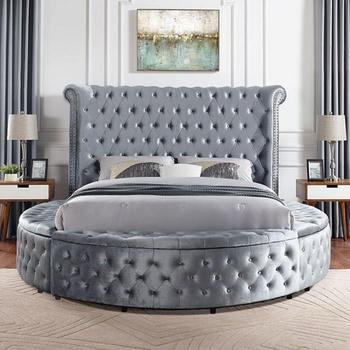 Gepolstertes Hotel-Holzbett Moderner Bettrahmen für rundes Bett in Queen-Size mit Stauraum